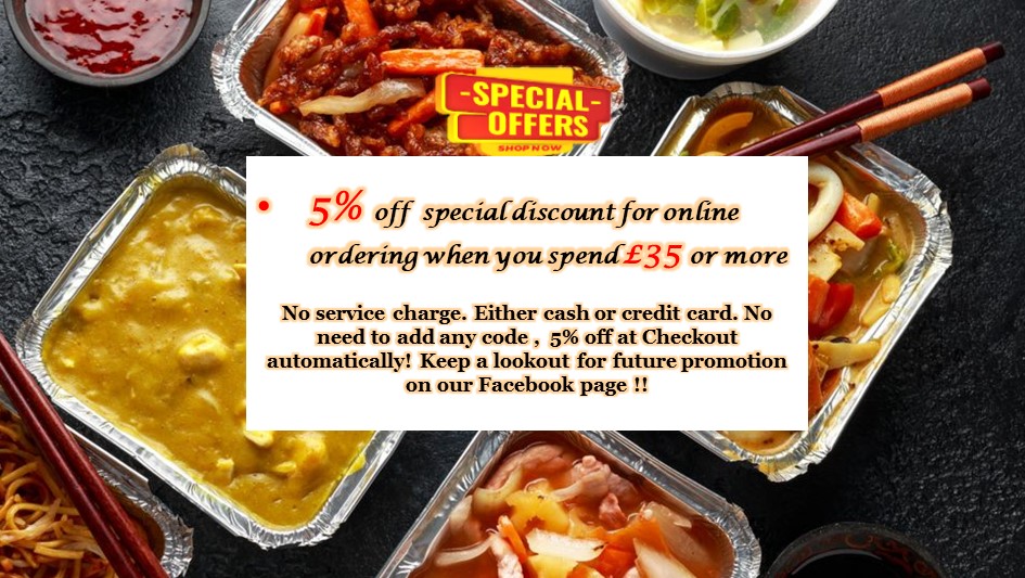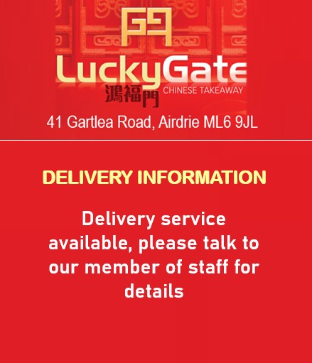 Lucky Gate serves a variety of delicious Chinese dishes. And now with our website promotion, you can enjoy 5% off orders over £35 !! No service charge. Payment types include cash, credit card or PayPal. The discount is applied automatically at checkout - no need for any codes. Why not try it today